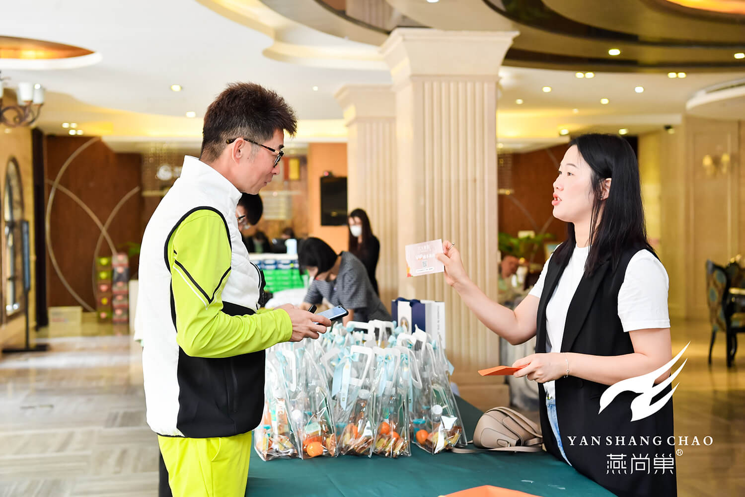 為了讓參賽隊友更加精神飽滿的揮桿,直營中心帶領業務骨干提前來到賽場布置能量包補給站,當出席活動的貴賓前來簽到時,燕尚巢一剪梅小藍瓶即食燕窩的精美能量包吸引了大家的眼球,工作人員對即食燕窩的專業分享,引起了大家濃厚的興趣,大家在品嘗過后,紛紛對燕尚巢即食燕窩的產品贊不絕口,并踴躍購買。