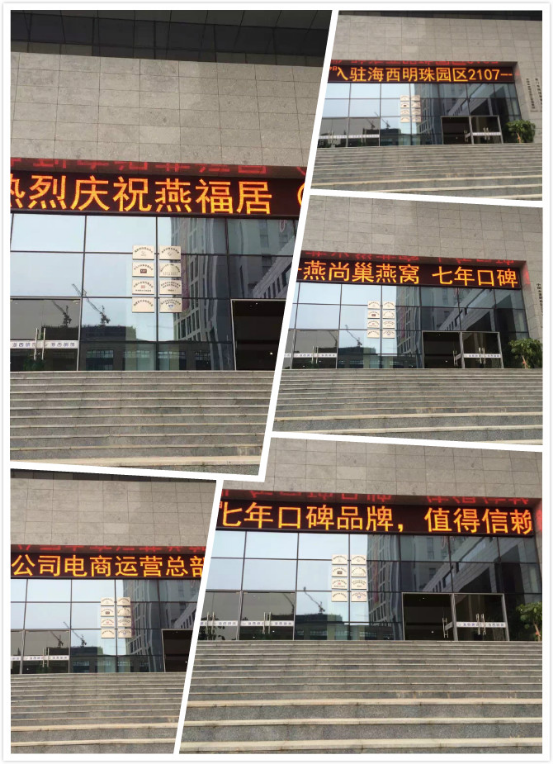 剛到地方就看到商務(wù)園區(qū)里L(fēng)ED牌流動(dòng)著燕尚巢醒目的字眼:“熱烈慶祝燕福居(廈門)商貿(mào)有限公司商務(wù)運(yùn)營(yíng)總部入駐海西明珠園區(qū)2107--燕尚巢燕窩,七年口碑值得信賴”瞬間感覺(jué)高大上。